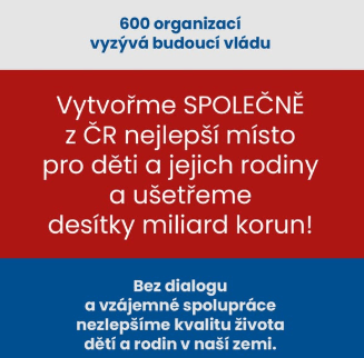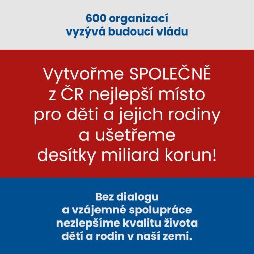 Vytvořme SPOLEČNĚ z ČR nejlepší místo pro děti a jejich rodiny a ušetřeme desítky miliard korun Situace a postavení dětí a rodin v ČR jsou dlouhodobě alarmující, což přináší každoroční náklady v desítkách miliard korun. Hrozí nám, že příští generace budou méně početné, zdravé, spokojené, motivované a klesne i jejich vzdělanost. Absence včasné podpory stojí ČR jen v souvislosti s řešením zdravotních důsledků negativních zkušeností v dětství 136 mld. ročně. Řešení už známe – díky práci víc než 600 členských organizací. Jejich zavedení však vyžaduje nejen politickou podporu, ale také kontinuitu, společný zájem a spolupráci.